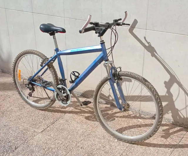 Bicicleta de montaña con ruedas de 26 pulgadas. - Cuadro de color azul. - Manillar con puños - Portabidón negro.