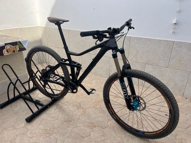 Detalles del productoBicicleta de montaña con doble suspensión.