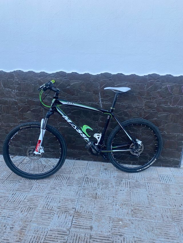 Detalles del productoBicicleta de montaña MASSI TRAX en color negro y verde.