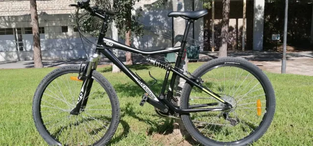 Bicicleta ROCKRIDER 6.0 Talla L de aluminio 21 velocidades, doble suspensión con juego de luces led recargables, ruedas 26 pulgadas en buen estado (la trasera se cambió hace 6 meses).