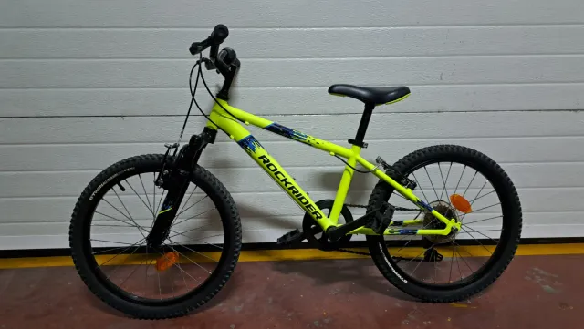 Bicicleta de montaña Rockrider ST500 en color amarillo brillante. 20 pulgadas. Cambio de 6 velocidades. En buen estado.