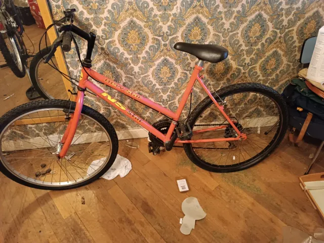Bicicleta de montaña New Star en color rosa con detalles degradados. Ideal para paseos. - Cuadro de metal. - Ruedas de 26 pulgadas. - Sillín negro. - Manillar negro.