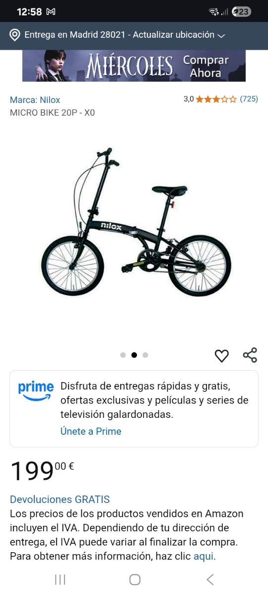 Detalles del productoBicicleta plegable Nilox Micro Bike 20P - X0 en color negro. Ideal para desplazamientos urbanos.