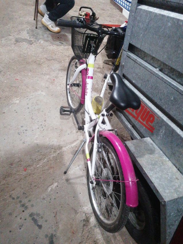 Bici con cesta delantera, sillín ajustable, frenos, pata, cambio y timbre, sin ruedines
