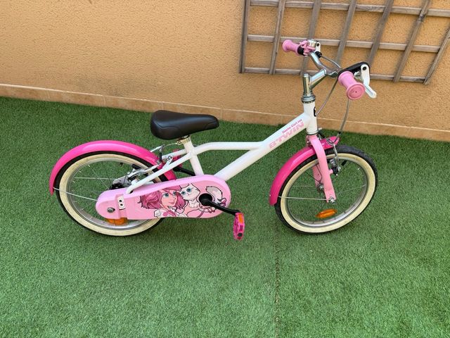 Bicicleta infantil Btwin en buen estado, ideal para niñas. - Modelo B'Twin 16 pulgadas. - Color blanco y rosa. - Diseño con dibujo de niña y gato. algo negociable!!!