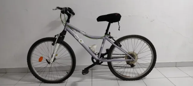 Bicicleta infantil de 24 pulgadas, ideal para niñas. - Cuadro de color gris claro. - Sillín negro. - Incluye portabidón blanco.