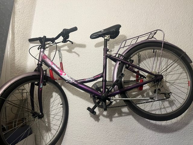 Bicicleta de niña en color morado, ideal para paseos. Edad de 10 a 13. - Ruedas de 26 pulgadas. - Incluye portabultos trasero. - Guardabarros delantero y trasero
