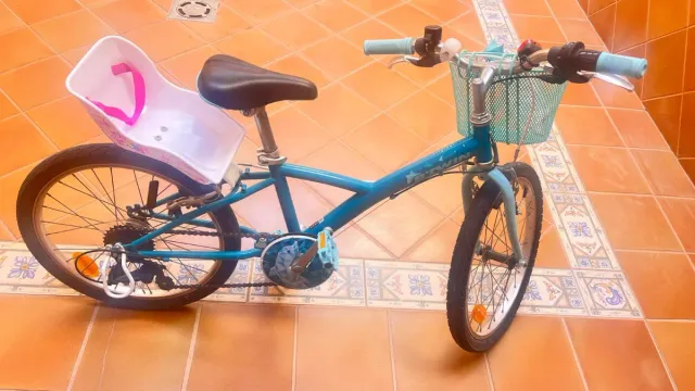 Detalles del productoBicicleta infantil en color azul, ideal para niñas de 6 a 9 años. Cuenta con un asiento trasero para llevar a un acompañante.