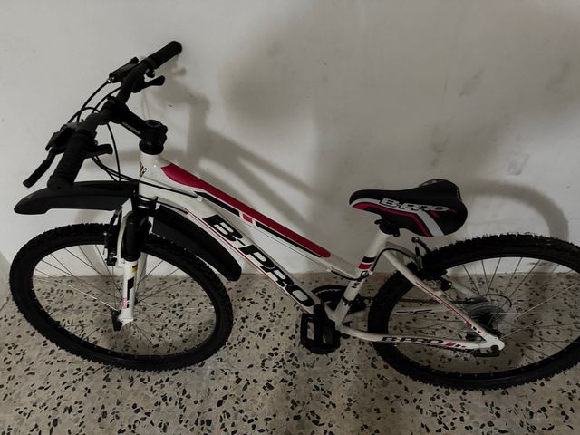 Bicicleta infantil B-Pro en excelente estado, casi sin uso. - Cuadro blanco con detalles en rosa. - Ruedas de 20 pulgadas. - Guardabarros delantero y trasero.