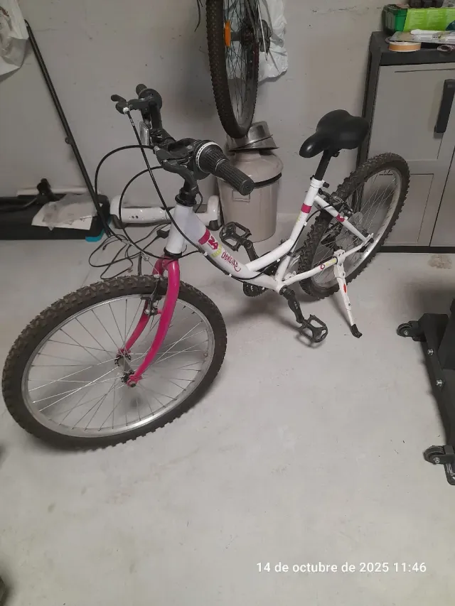 Detalles del productoBicicleta infantil en color blanco con detalles en rosa.
