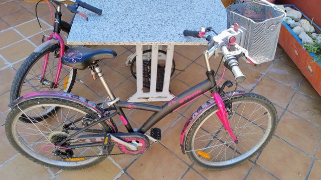 Detalles del productoSe venden dos Bicicleta para niña BTWIN de 20 pulgadas, color negro con detalles rosas. Está en buen estado, aunque tiene algunas marcas de uso.