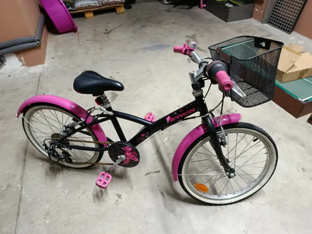 Detalles del productoBicicleta infantil Btwin en color rosa, ideal para las pequeñas ciclistas. Cuenta con una práctica cesta delantera.