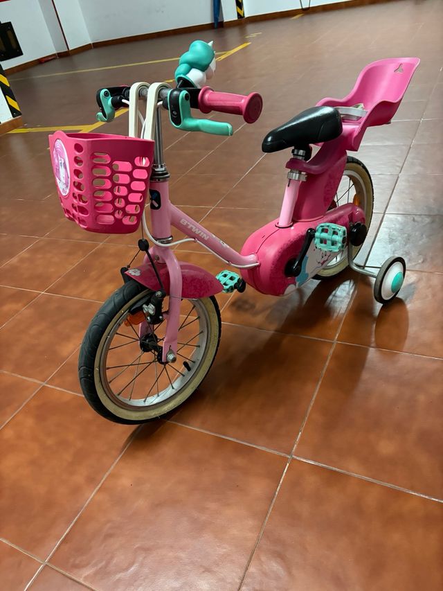 Detalles del productoBicicleta infantil de color rosa, ideal para las primeras aventuras sobre ruedas. Cuenta con un diseño divertido y práctico.