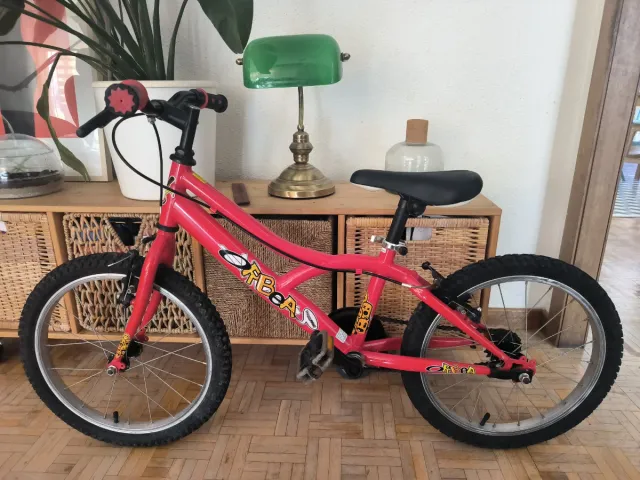Bicicleta Orbea con ruedas de 18 pulgadas, ideal para niños de 4 a 7 años, de color rojo. Buen estado general, poco uso.