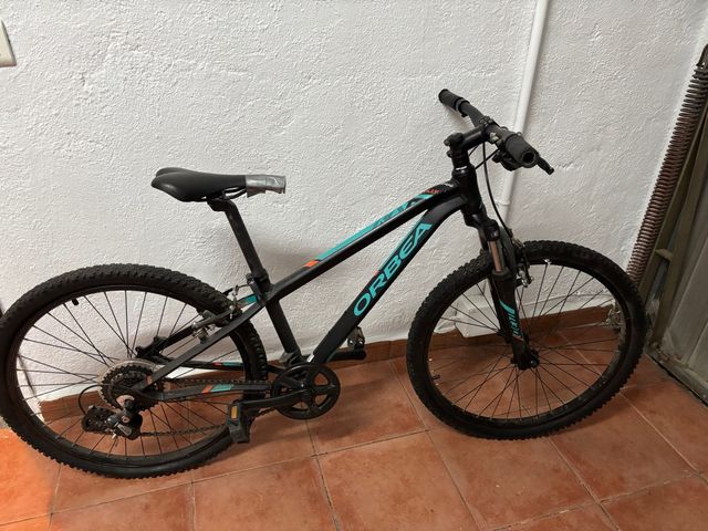 Detalles del productoBicicleta de montaña Orbea en color negro con detalles en turquesa y naranja. Ideal para iniciarse en el ciclismo.
