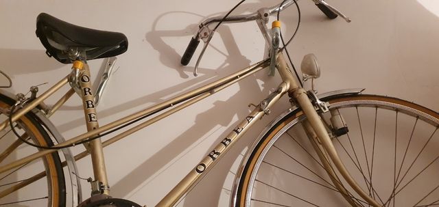 Bicicleta Orbea de época, fabricada entre los años 70 y 80. Un clásico para disfrutar. - Cuadro de metal dorado. - Sillín negro. - Manillar cromado.