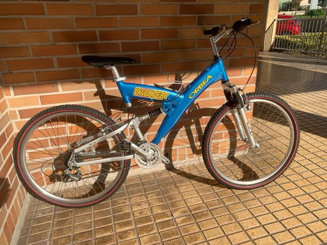 Bicicleta Orbea Discovery de color azul con suspensión. - Cuadro Orbea. - Modelo Discovery. - Color azul. - Suspensión delantera y trasera.
