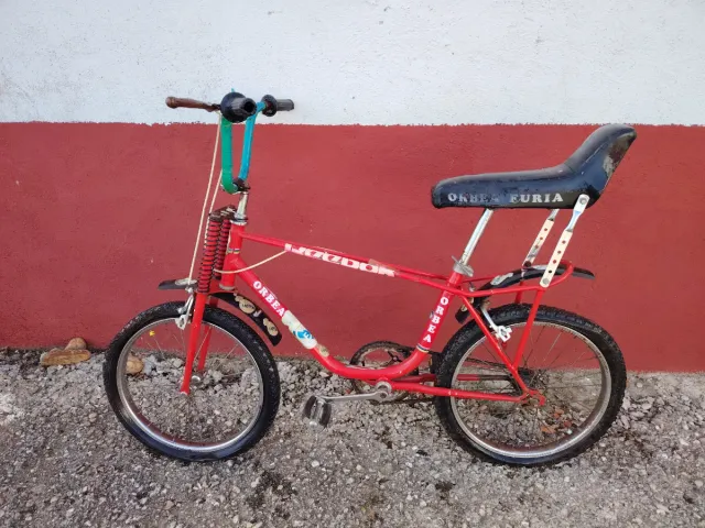 Bicicleta Orbea Furia de color rojo. - Sillín negro con texto ORBEA FURIA. - Ruedas de 20 pulgadas. - Guardabarros delantero y trasero.