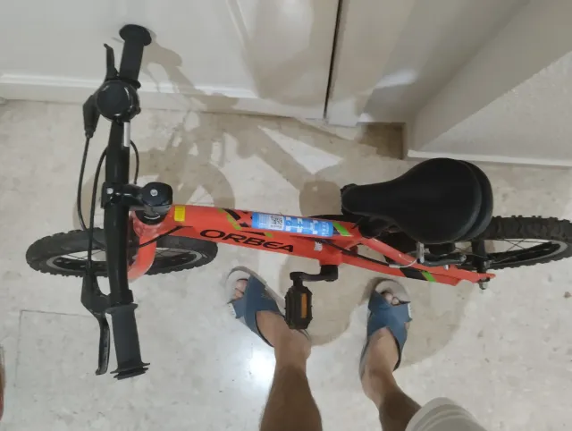 Bicicleta infantil de la marca Orbea en color naranja. Ideal para los más pequeños. - Cuadro de metal resistente. - Ruedas todoterreno. - Sillín ajustable.