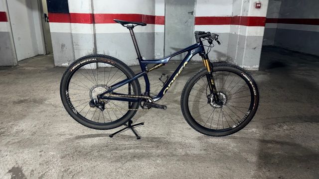 Detalles del productoBicicleta Orbea Oiz M Pro en color azul marino con detalles dorados.