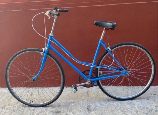 Bicicleta de paseo en color azul, ideal para desplazamientos urbanos. - Cuadro de bicicleta de paseo. - Ruedas de bicicleta. - Sillín de bicicleta.