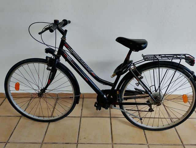 Detalles del productoBicicleta de paseo en color negro, ideal para desplazamientos urbanos.