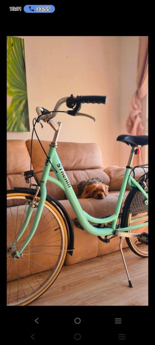 Detalles del productoBicicleta de paseo en color menta, ideal para disfrutar de paseos cómodos.