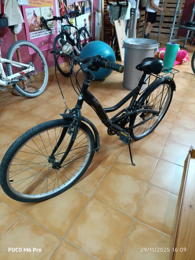 Bicicleta de paseo en color negro, diseñada para mujer. - Cuadro de paseo. - Ruedas de 26 pulgadas. - Sillín cómodo. - Portabultos trasero.