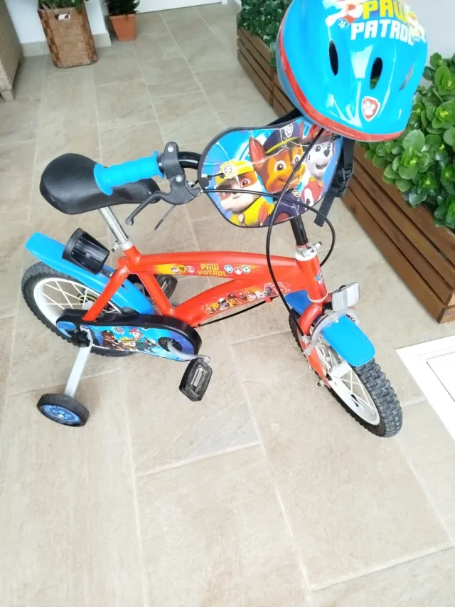 Detalles del productoBicicleta infantil con diseño de Paw Patrol, ideal para niños de 4 a 6 años. Incluye casco.