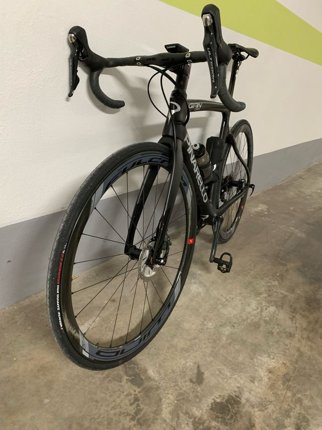 Detalles del productoBicicleta de carretera Pinarello Gan Disk con cuadro de carbono.