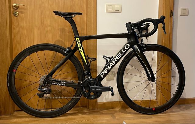 Detalles del productoBicicleta de carretera Pinarello GAN T600 con cuadro, ruedas y manillar de carbono.