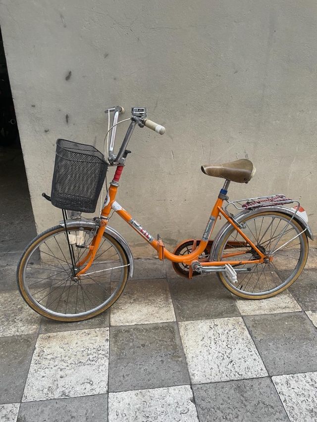Detalles del productobicicleta clasica BH, con asiento y empuñaduras originales. la chapa y la pintura en perfecto estado. solo se le ha añadido un cesto delante, que se puede quitar. tambien lleva bandeja detras. se pliega por el centro en modo libro, ideal para transportar en el maletero. tiene las camaras y cubiertas recien cambiadas.