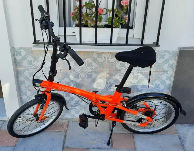 Detalles del productoBicicleta plegable B'Twin en color naranja, modelo 500.