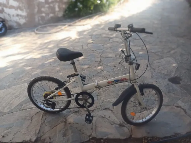 Detalles del productoBicicleta plegable de color blanco, ideal para desplazamientos urbanos o para llevarla contigo a donde vayas.