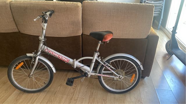 Detalles del productoBicicleta plegable de color plata, ideal para desplazamientos urbanos o para llevarla contigo a todas partes.