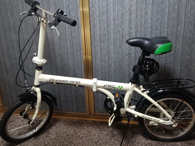 Bicicleta plegable Boomerang modelo PS21, prácticamente sin uso - Color blanco con detalles verdes - Portabultos trasero. - Regalo U de seguridad y luz trasera