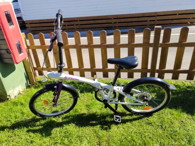 Detalles del productoBicicleta plegable Btwin Hoptown 320 en color blanco. Ideal para desplazamientos urbanos y fácil de guardar.