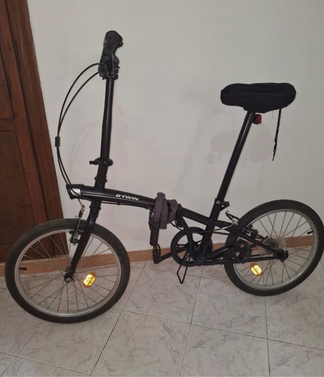 Detalles del productoBicicleta plegable Btwin Tilt100 en color negro. Ideal para desplazamientos urbanos y fácil de usar