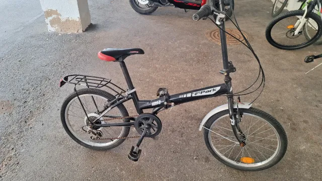 Detalles del productoBicicleta plegable de color negro, ideal para desplazamientos urbanos o para llevarla contigo a donde vayas.