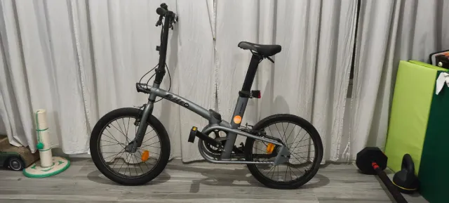 Detalles del productoBicicleta plegable de color gris, ideal para desplazamientos urbanos o para llevarla contigo a donde vayas.