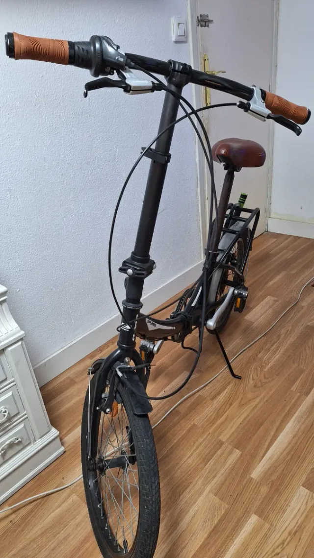 Detalles del productoBicicleta plegable en color negro, ideal para desplazamientos urbanos o para llevarla contigo.