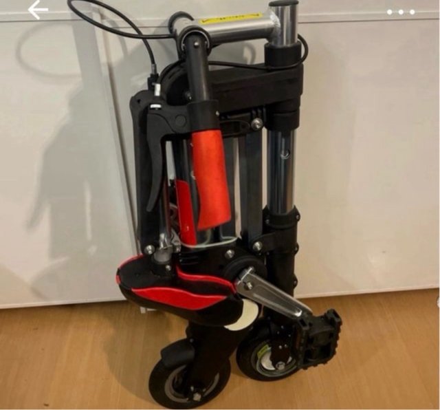 Bicicleta plegable con un diseño moderno en negro y detalles rojos.
