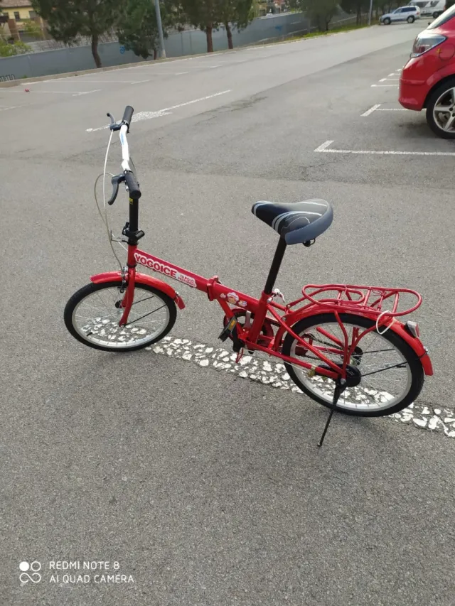 Bicicleta plegable de color rojo, ideal para desplazamientos urbanos o para llevarla contigo a donde vayas. - Diseño plegable. - Color rojo. - Incluye cesta trasera.