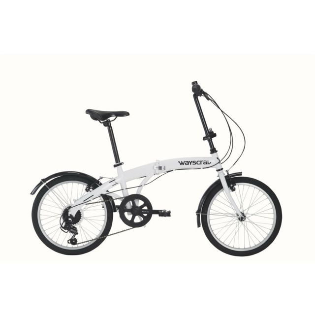 Detalles del productoBicicleta plegable de la marca Wayscral en color blanco. Ideal para desplazamientos urbanos y fácil de almacenar.