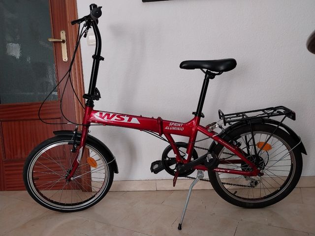 Bicicleta plegable de color rojo - Marco de aluminio. - Ruedas de 20 pulgadas. - Portabultos trasero.