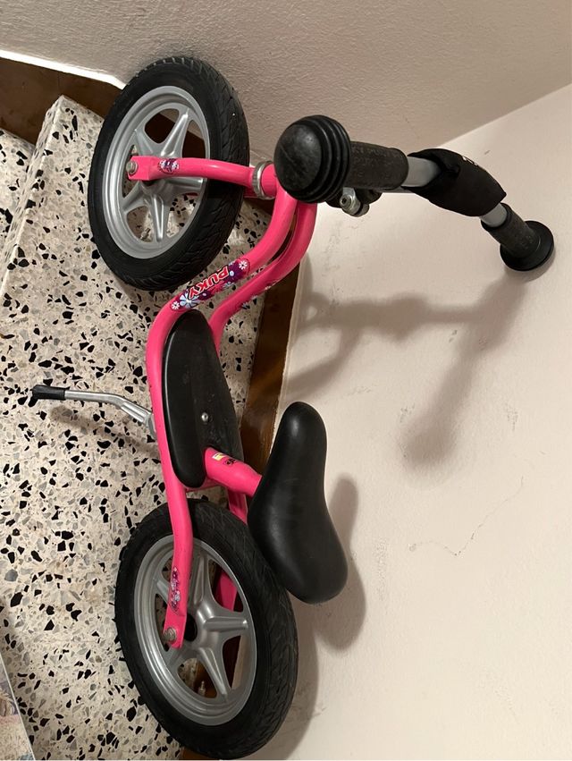 Detalles del productoBicicleta Puky para principiantes, ideal para que los más pequeños aprendan a mantener el equilibrio. Es de color rosa y tiene un diseño bonito.