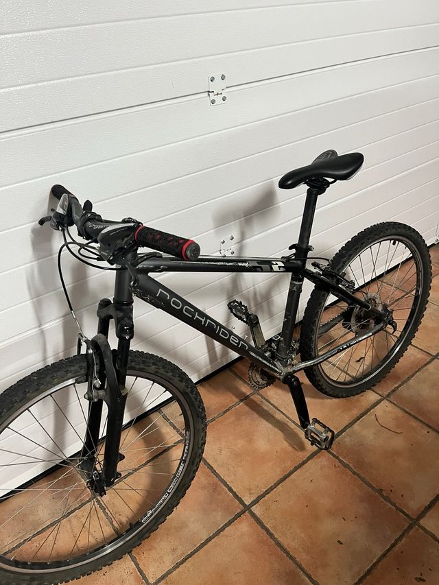 Bicicleta de montaña Rockrider. - Cuadro de aluminio. - Suspensión delantera. - Frenos de disco. - Ruedas de 26 pulgadas . Le falta ajustes