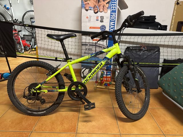 Bicicleta infantil Rockrider de 20 pulgadas. - Cuadro de color verde lima. - 6 velocidades. - Ruedas todoterreno.