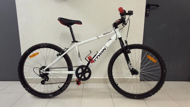 Bicicleta de montaña RockRider 3000 en color blanco. BICICLETA JUVENIL - Cuadro de aluminio. - Ruedas de 20 pulgadas. - Frenos V-Brake. - Cambio Shimano.