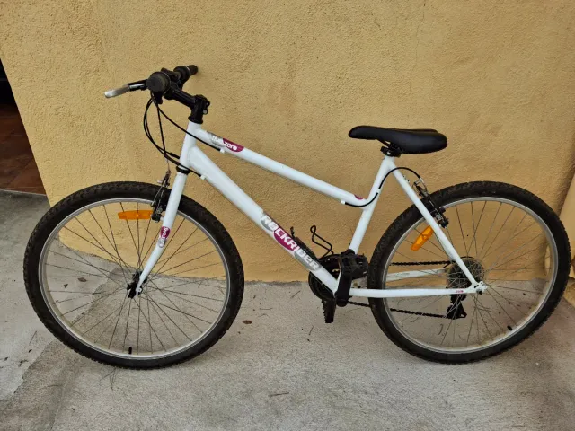Bicicleta de montaña Rockrider five.zero en color blanco. - Cuadro de aluminio. - Ruedas de 26 pulgadas. - Frenos V-brake. - Sillín acolchado.